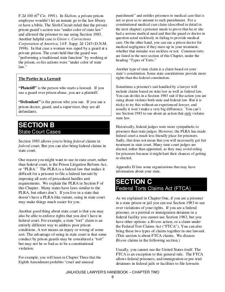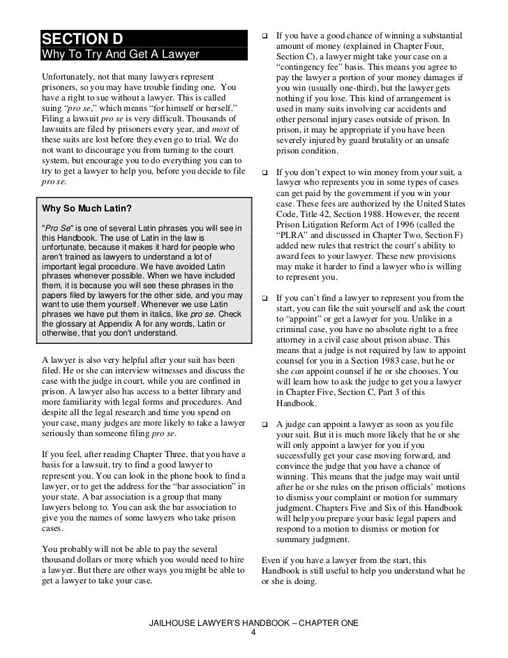 Handbook For Jailhouse Lawyers Jailhouse lawyer's handbook how to bring a federal , the jailhouse lawyers handbook this handbook is a resource for prisoners who wish to file a federal lawsuit ... Fetch This Document