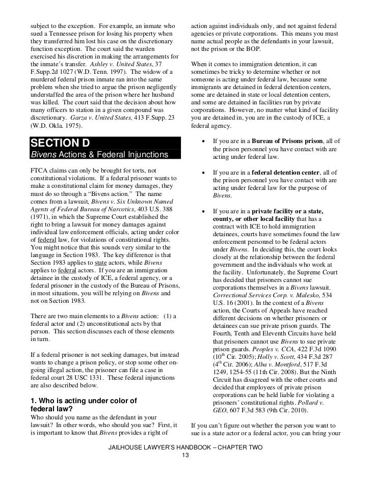 The jailhouse lawyer's handbook, the jailhouse lawyers handbook how to bring a federal lawsuit to challenge violations of your rights in prison published by the center for constitutional rights . More references related to the united states ... Access Content